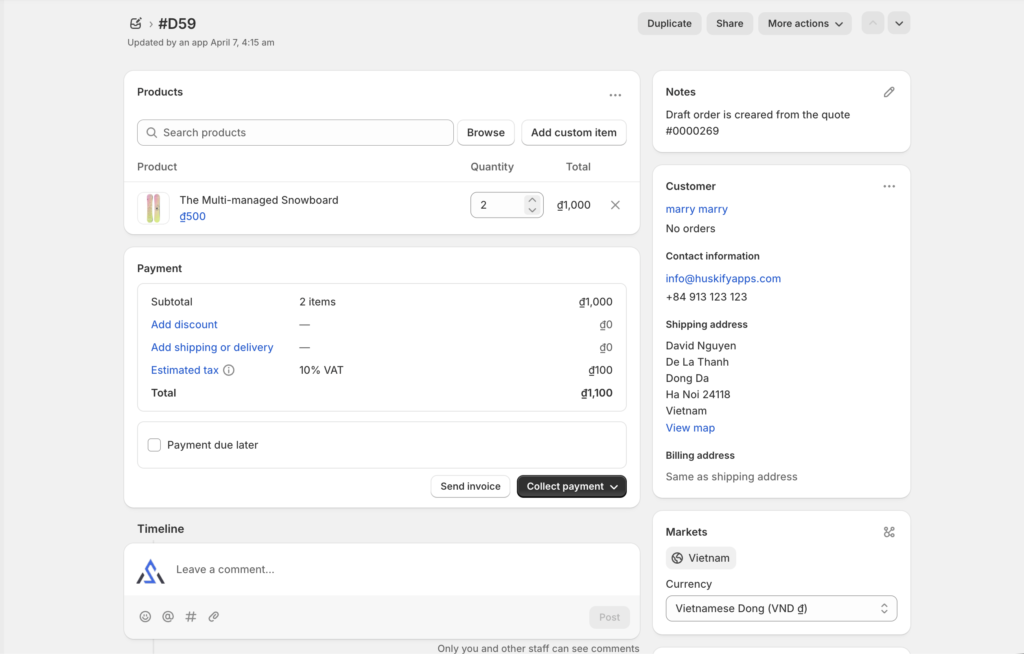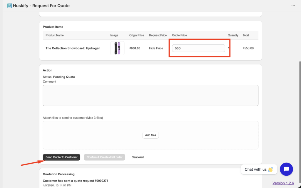 Our app gives merchants full control over how quotes are created and sent, helping you respond to customer inquiries faster and more effectively.