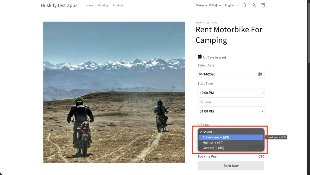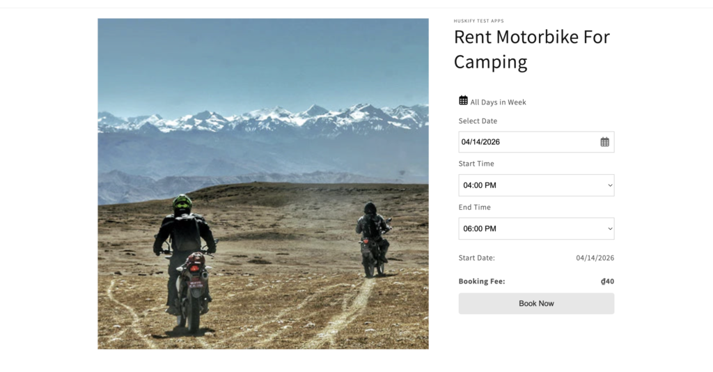 If you’re running a rental business on Shopify, the Huskify – Appointment Booking App helps you easily offer motorbike and bicycle rentals by the hour — directly on your online store.